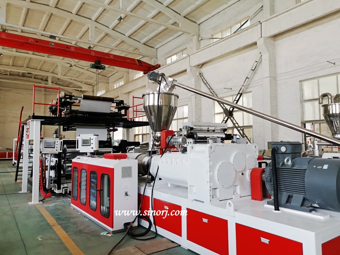 解決了原有PVC地板用密煉機(jī),開煉機(jī),四輥壓延,回火,熱壓貼膜的復(fù)雜加工工藝;占地面積大,用人多,生產(chǎn)成本高,耗能大,設(shè)備購買費用高的難題。
